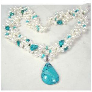 3 Rows White Pearl & Turquoise Necklace Pendants & Charms |
