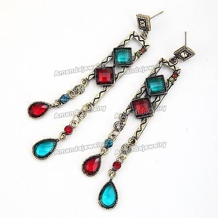 Acrylic Earrings Blue & Red Gem Body Jewelry |