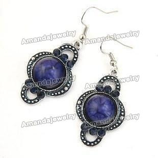 Black With Purple Gem Earrings Body Jewelry |