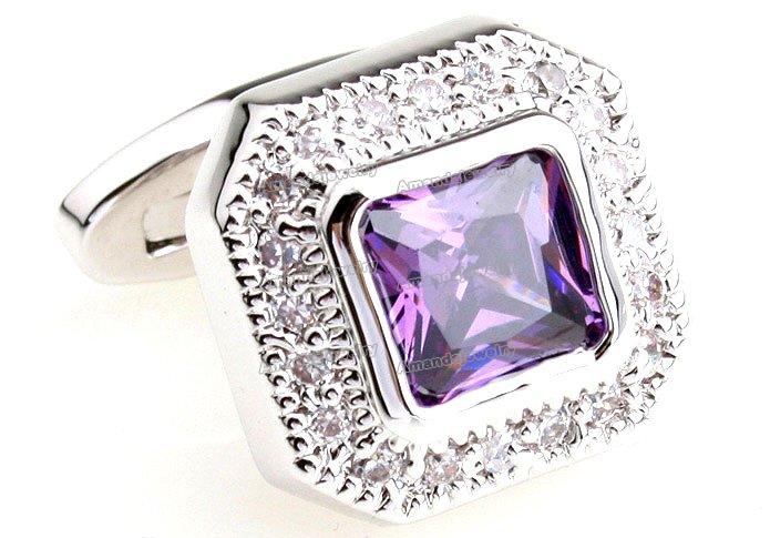 Diamond Silver With Purple Gem Stainless Steel Jewelry |