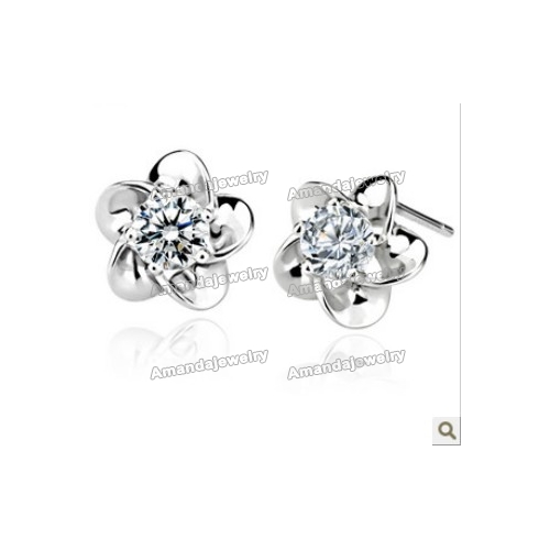 Ear Pin Plum Shape With Diamond Silver Jewelry |