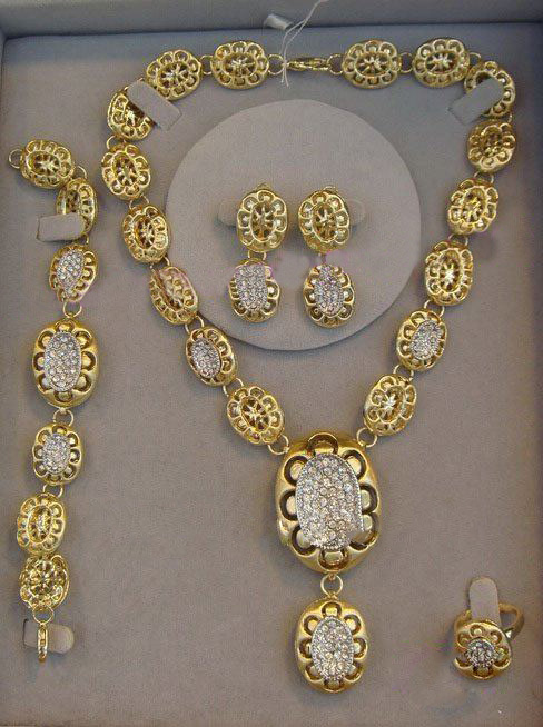 Item Type: Jewelry Sets Fine or Fashion: Fashion Brand Name: ACUVI Gender: Women's Metals Type: Copper Alloy Occasion: Gift Jewelry Sets Type: Fashion & Costume JewelrySets Four Sets: Necklace bracelace.Earring Ring Jewelry Type: Jewelry Sets Place of Origin: Guangdong, China (Mainland) Main Stone: Crystal, Rhinestone Jewelry Sets Type: Fashion & Costume Jewelry Sets Occasion: Anniversary, Engagement, Gift, Party, Wedding Material Type: Copper Alloy Jewelry Main Material: Alloy Model Number: DS-10118 Gold