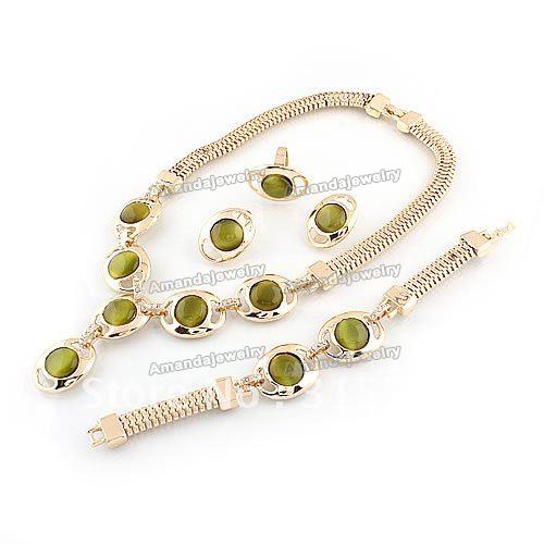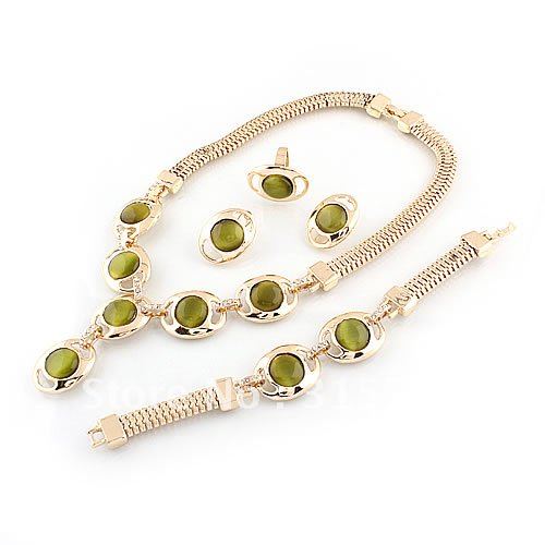 Green & Gold Plated Necklace & Earring & Bracelets & Ring Zinc Alloy Jewelry |