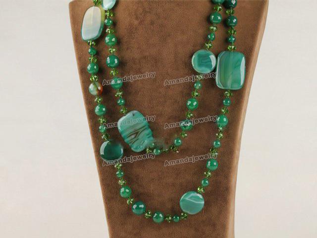 Long Style Peaceful Green Agate & Crystal Necklaces |