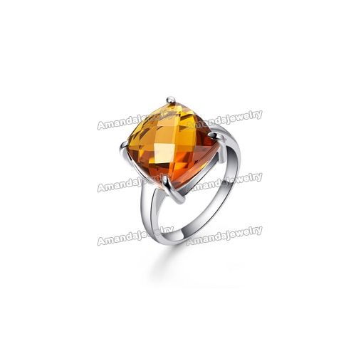 Orange Gem Silver Woman's Ring Tungsten Jewelry |