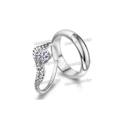 Pure Silver With Diamond Rectangular Shape Wedding Engagement Rings |