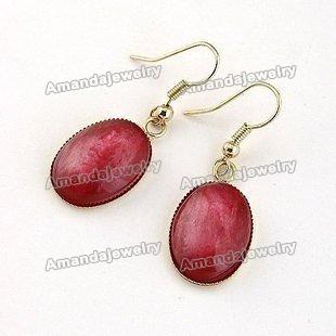 Red Gem Oval-shaped Europe Style Earrings |