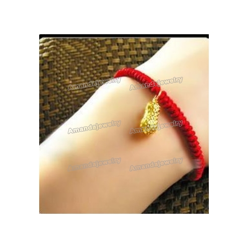 Red Rope With Gold Peanuts Adjustable Bracelets & Bangles |