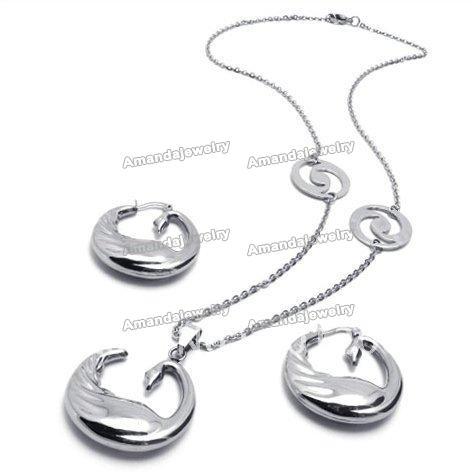 Silver With Duck Shape Necklace & Earring Stainless Steel Jewelry |