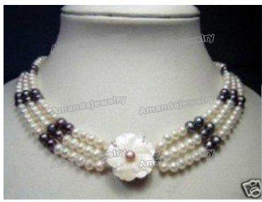 Three Layers White & Purple Pearls With A Flower Pendants & Charms |