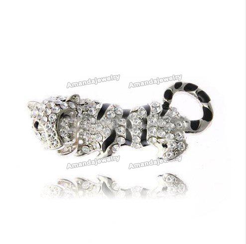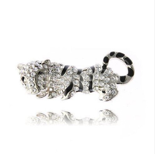 Tiger Shape White & Black With Crystal Brooches |